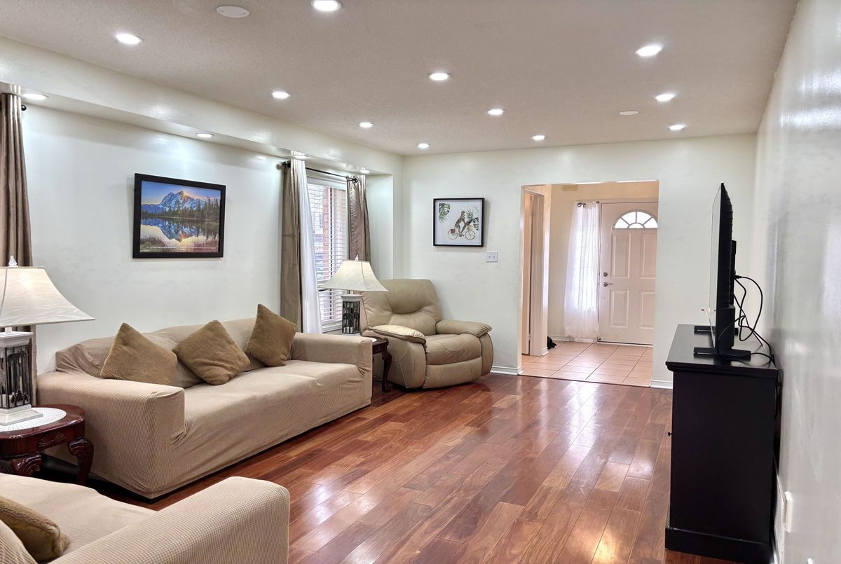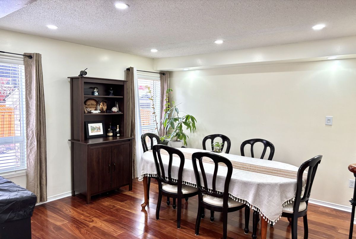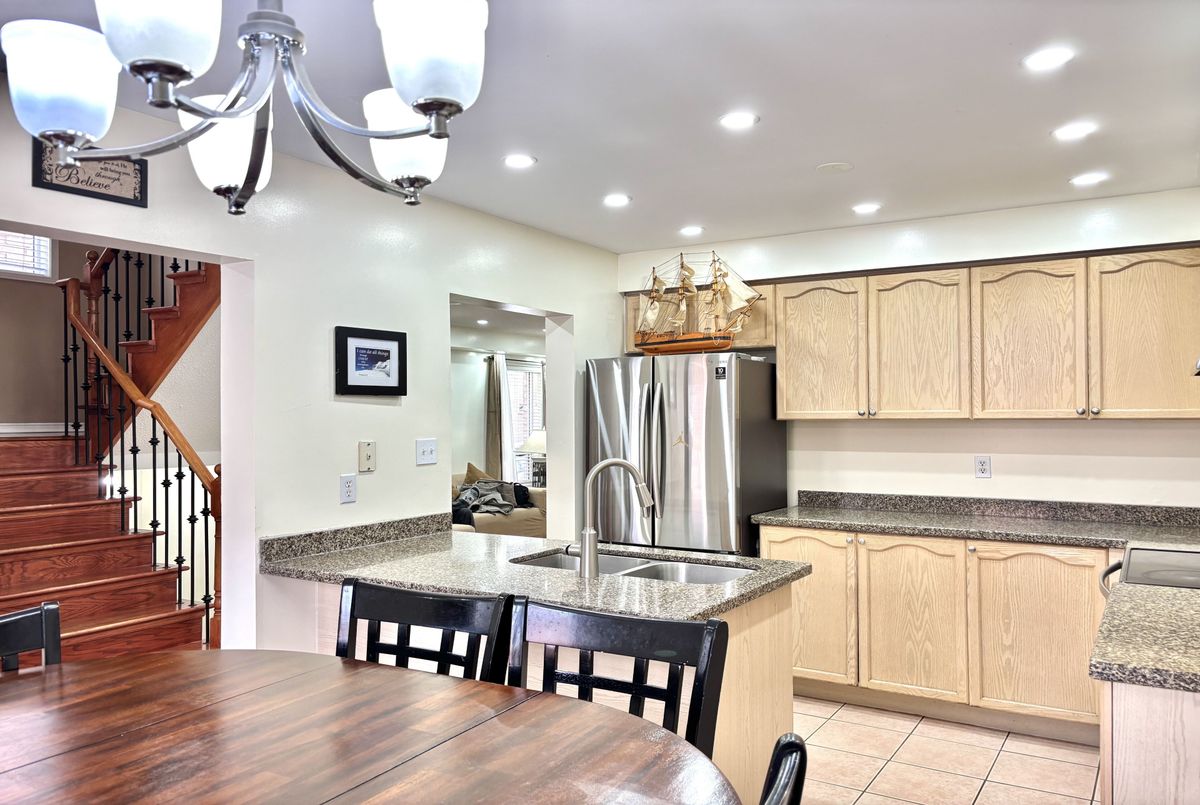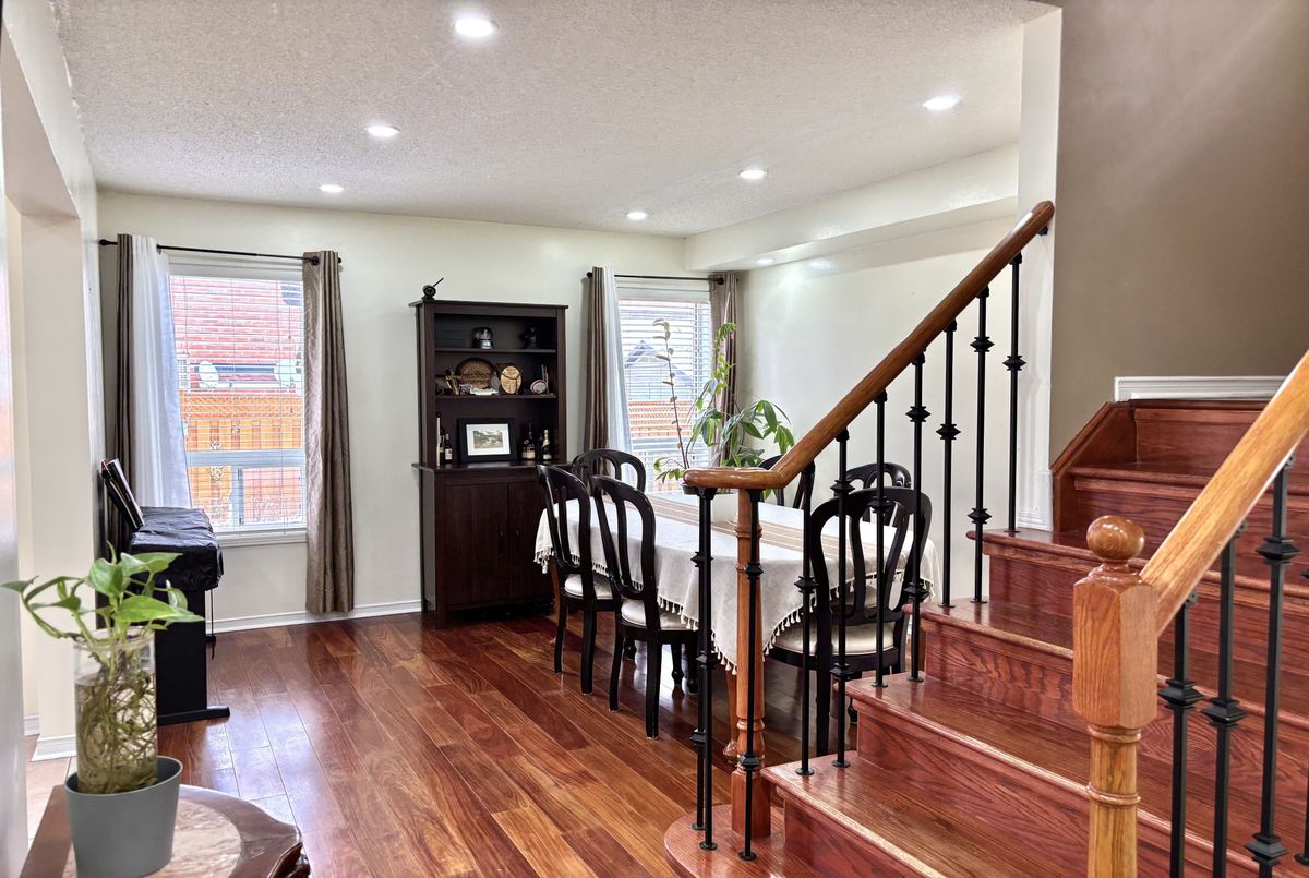 Discover this beautifully maintained detached home featuring a bright and functional layout, three spacious bedrooms on the second floor, and a nicely designed finished basement. The main level offers a family-sized kitchen with quartz countertops, breakfast area and walk-out to the backyard, along with newly installed pot lights and a modern staircase. Upstairs features three spacious bedrooms, including a primary with a walk-in closet and 4-piece ensuite, plus a second full 4-piece bathroom. The finished basement includes a spacious recreation room, additional room, convenient kitchenette, and a full 3-piece bathroom, ideal for a home office, guest space, gym or extended family living. The property also offers excellent potential to create a private side entrance. Direct access from the garage to the main level and a driveway with no sidewalk provide added everyday convenience and parking for up to 3 vehicles. Ideally located within walking distance to schools, shopping, parks and Cassie Campbell Community Centre, and just minutes to Mount Pleasant GO Station and Highway 410.A welcoming home that delivers both comfort and functionality!